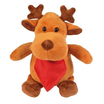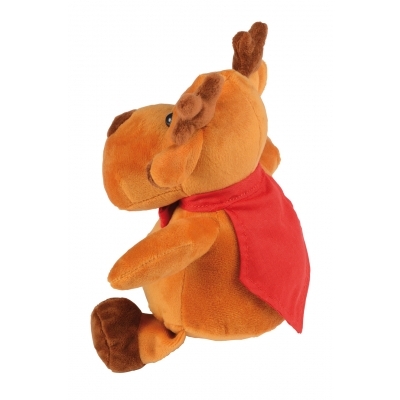 Pluszowy łoś EDDY z miękkim futerkiem i osobno pakowaną czerwoną chusteczką przeznaczoną do znakowania.