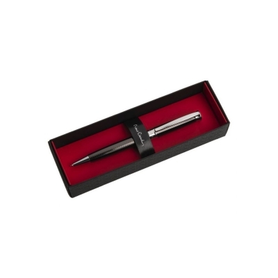 Metalowy długopis o bardzo eleganckim kształcie, zdobiony drobnym grawerem na całej powierzchni. Długopis posiada wkład piszący na niebiesko z końcówką 1mm. W zestawie znajduje się zapasowy czarny wkład, długopis pakowany w ozdobne pudełko Pierre Cardin, wyposażony w certyfikat autentyczności.